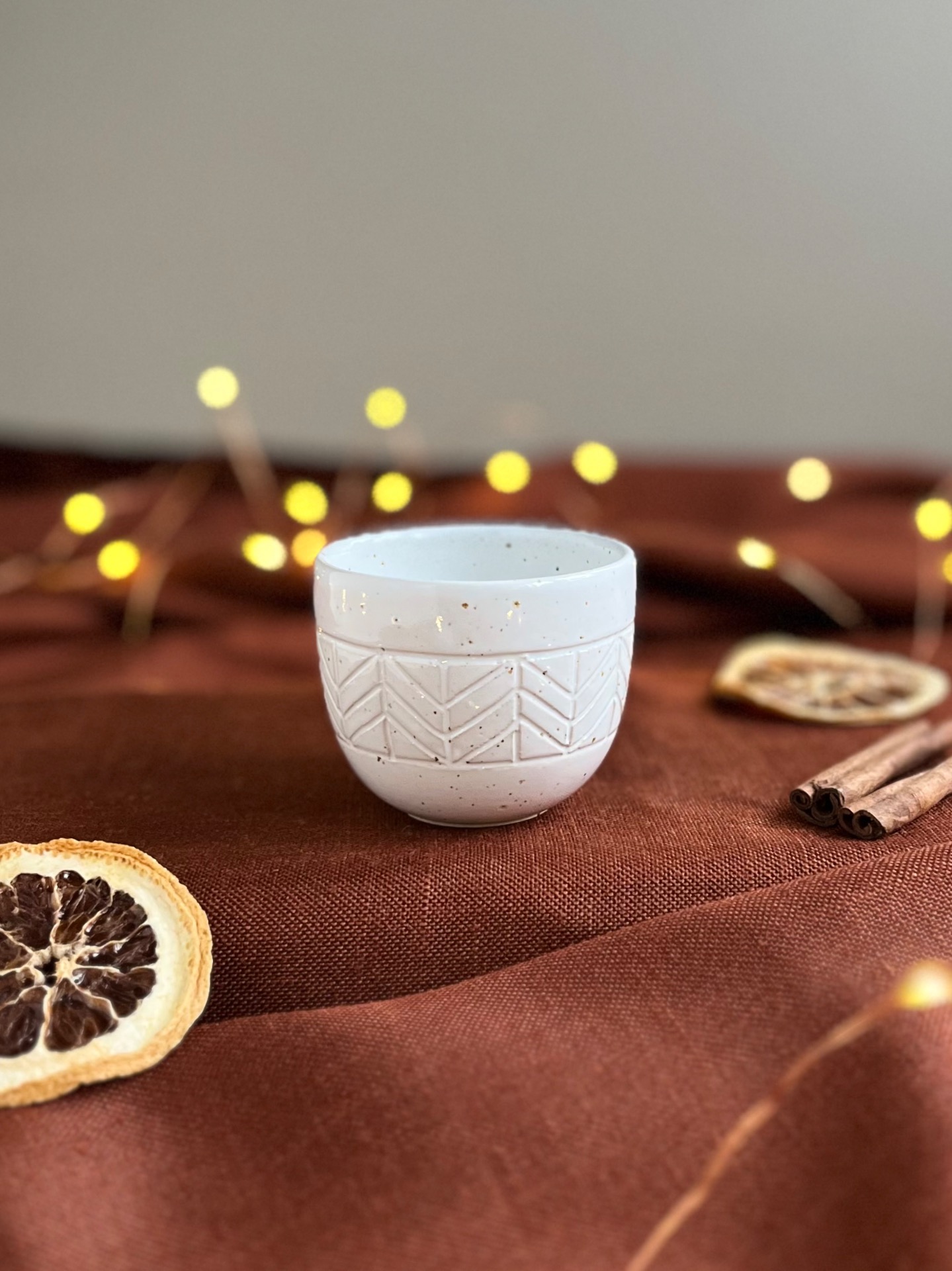 Ručne točená šálka zo zimnej limitovanej edície s objemom 100 ml ideálne poslúži na ristretto